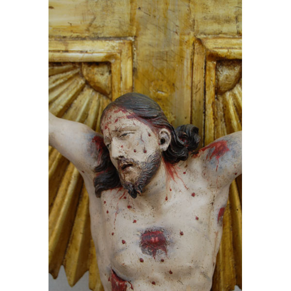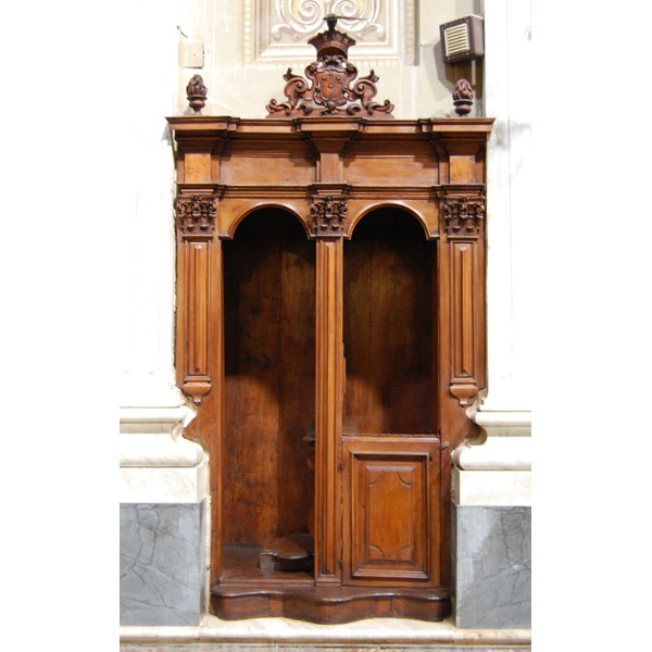 Lotto di lavori comprendenti tre tipologie di opere: arredi in legno naturale, legno dorato e sculture lignee policrome. I confessionali del XVIII sec. sono sormontati dallo stemma dell'ordine carmelitano che, in origine, custodiva la chiesa. Il pulpito ed i mobili della sagrestia sono stati realizzati nel XIX sec. Di notevole interesse è il Crocifisso policromo inserito in un apparato ligneo collocato in sagrestia che, dopo le operazioni di pulitura, ha rivelato una ricca cromia e un forte impatto emotivo. La croce dell'altare maggiore in argento meccato, probabilmente, ha sostituito una più antica. Il basamento con due angeli che la sostiene, realizzato in legno dorato, denuncia una differenza qualitativa e formale che suffraga tale ipotesi. |